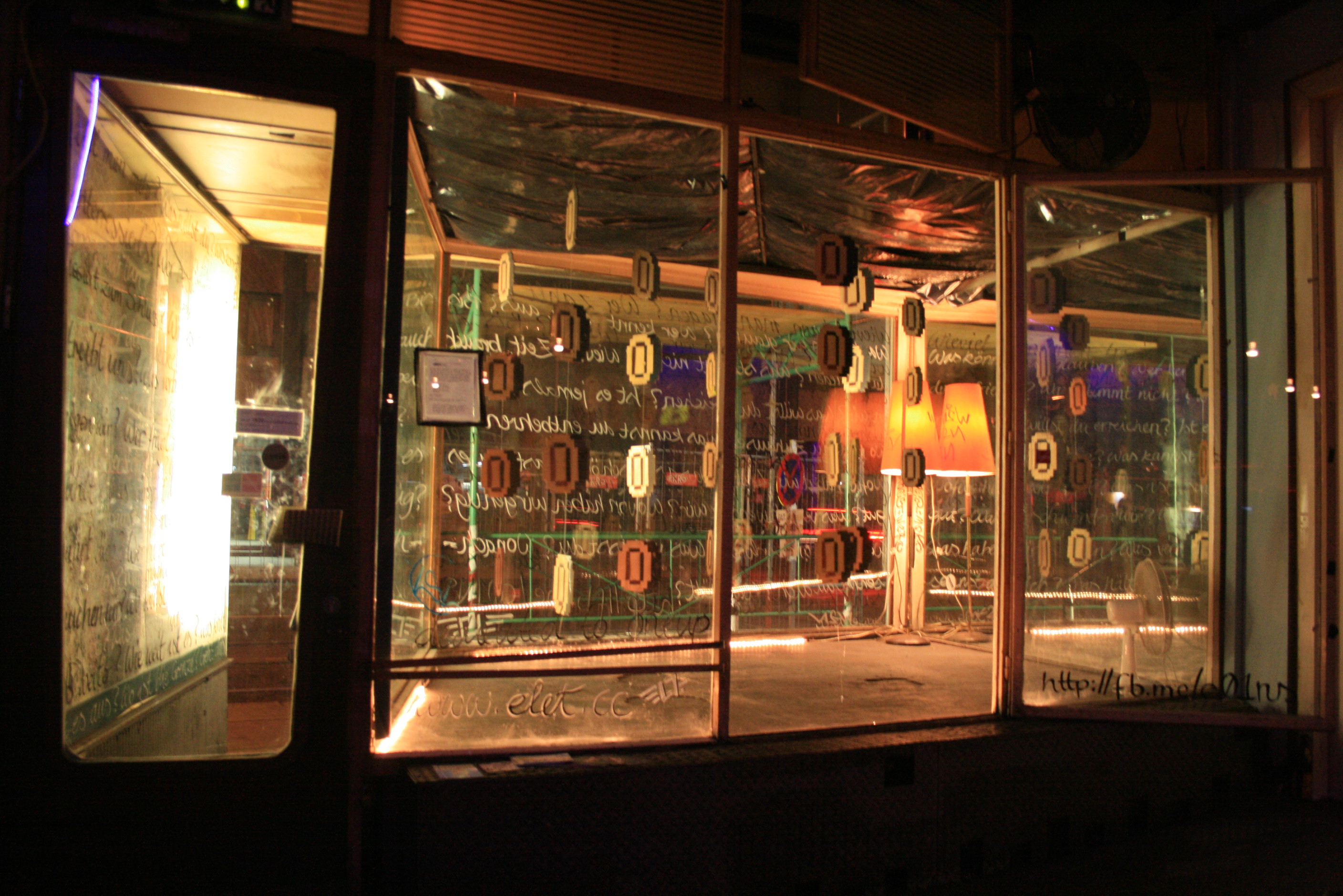 (Karton, Lack, Windowmarker, Homepage) im Schaufenster des Schikaneder,